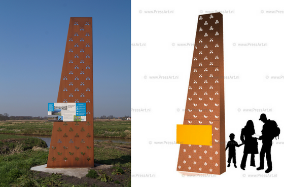 Een stijlvol frame voor je Infobord, informatiepaneel of Orientatiepaneel in de industriele omgeving of begraafplaats. Maar het kan anders ...hier wordt hij toegepast voor een archeologisch informatiebord binnen de dorpskern.